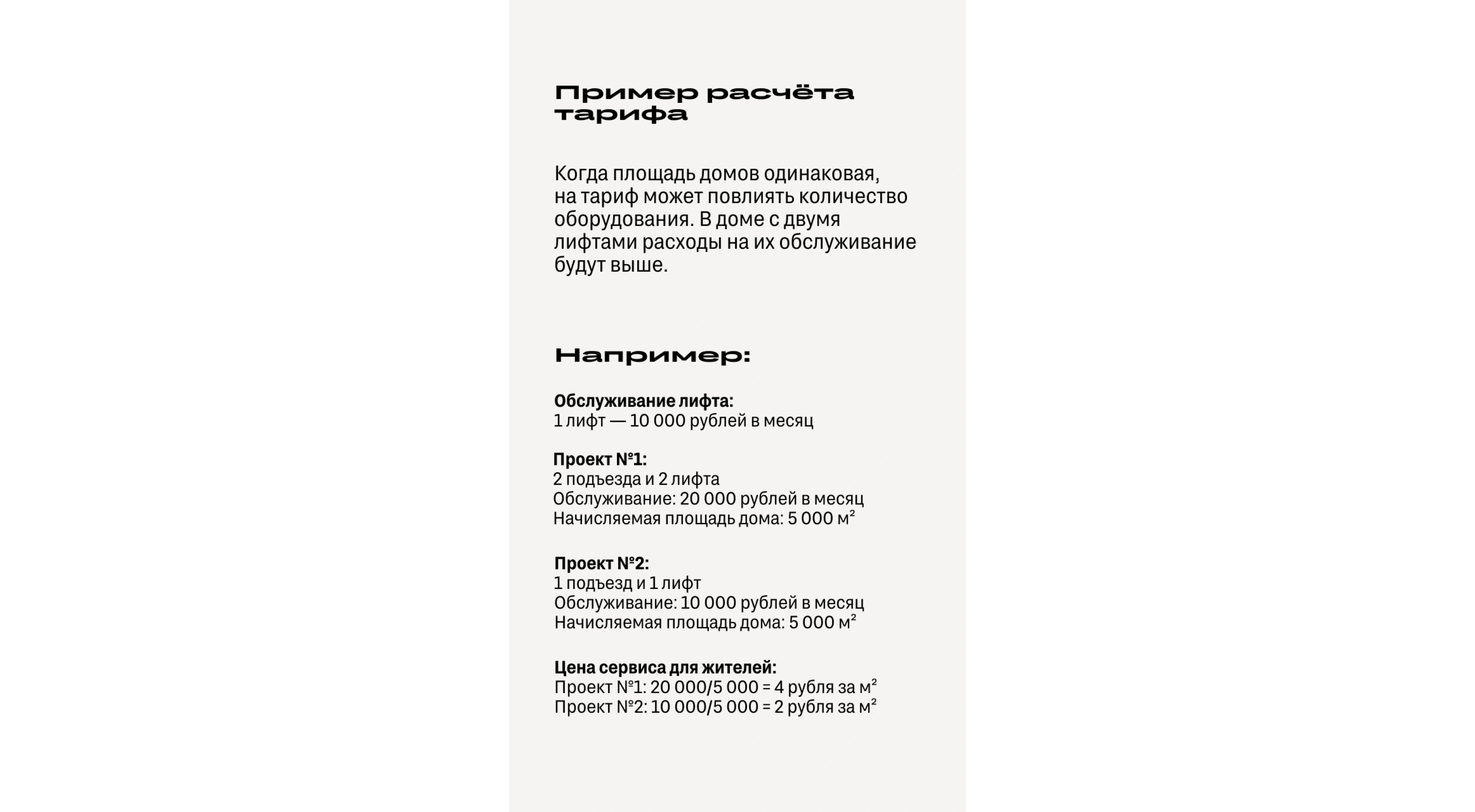 Тариф для каждого дома уникален, ведь у каждого проекта свой состав технического оснащения и архитектурных решений.