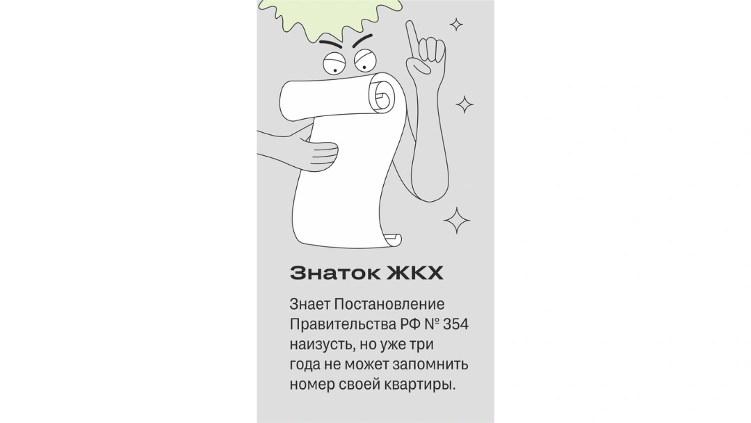 Собрали несколько типов соседей в карточках. Если нашли своего — отправьте в чат дома. Пусть узнает себя 😊